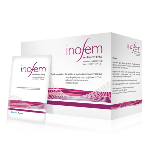 Inofem to suplement diety, który zawiera Mio-inozytol oraz kwas foliowy. Mio-inozytol jest ważnym składnikiem błon komórkowych i prekursorem w syntezie drugorzędowych przekaźników hormonalnych wewnątrz organizmu, między innymi wpływa na reakcje komórek na insulinę (hormon biorący udział m.in. w metabolizmie węglowodanów). Kwas foliowy należy do grupy folianów i wpływa na wiele funkcji metabolicznych w organizmie. Pomaga w utrzymaniu prawidłowego metabolizmu homocysteiny i prawidłowej syntezy aminokwasów. Jednocześnie bierze udział w procesie podziału komórek, w tym komórek jajowych – oocytów oraz pomaga w prawidłowej produkcji krwi.