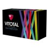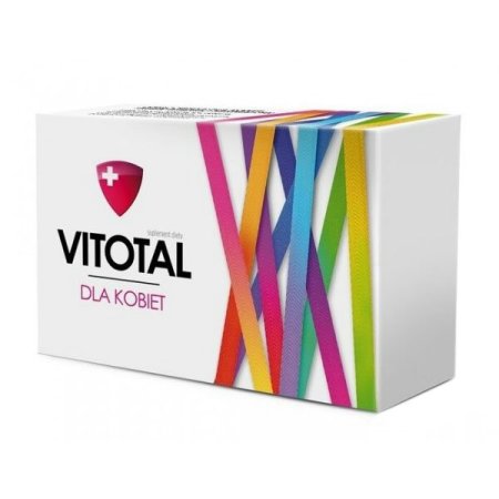 Vitotal dla Kobiet to suplement diety zawierający składniki, które pomagają w zachowaniu zdrowych włosów (biotyna, cynk, selen, skrzyp polny), skóry (biotyna, cynk, jod, niacyna , ryboflawina, witamina A, skrzyp polny) i paznokci (cynk, selen, skrzyp polny), utrzymaniu zdrowych kości (cynk, fosfor, magnez , mangan, wapń, witamina D, witamina K), prawidłowym funkcjonowaniu tarczycy (jod, selen) oraz przyczyniają się do regulacji aktywności hormonalnej (witamina B6), prawidłowym funkcjonowaniu układu odpornościowego (cynk, foliany (kwas foliowy), miedź, selen, witamina A, witamina B12, witamina B6, witamina C, witamina D, żelazo), prawidłowym funkcjonowaniu układu nerwowego (biotyna, jod, magnez, miedź, niacyna, ryboflawina, tiamina, witamina B12, witamina B6, witamina C) i utrzymaniu prawidłowych funkcji psychologicznych (biotyna, foliany (kwas foliowy), magnez, niacyna, tiamina, witamina B12, witamina B6, witamina C), prawidłowym funkcjonowaniu serca (tiamina), utrzymaniu prawidłowego metabolizmu węglowodanów (cynk) i prawidłowego poziomu glukozy we krwi (chrom), prawidłowej produkcji czerwonych krwinek (witamina B12, witamina B6, żelazo) i hemoglobiny (żelazo), utrzymaniu prawidłowego widzenia (cynk, ryboflawina, witamina A).