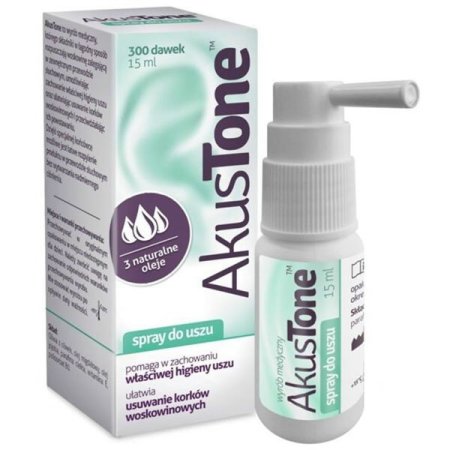 AkusTone to wyrób medyczny, którego składniki w łagodny sposób rozpuszczają woskowinę zalegającą w zewnętrznym przewodzie słuchowym, umożliwiając zachowanie właściwej higieny uszu oraz ułatwiając usuwanie korków woskowinowych i przeciwdziałając ich powstawaniu. Dzięki specjalnej końcówce możliwe jest łatwe rozpylenie produktu w przewodzie słuchowym bez wytwarzania nadmiernego ciśnienia. Spray rozpuszcza zalegającą woskowinę, przeciwdziała powstawaniu korków woskowinowych, umożliwia zachowanie właściwej higieny uszu w przypadku nadmiernej produkcji woskowiny u dzieci lub osób noszących aparaty słuchowe lub słuchawki, przeciwdziała zaleganiu wody w przewodzie słuchowym w trakcie kąpieli lub uprawiania sportów wodnych, u osób z tendencją do nawracających infekcji ucha zewnętrznego.
