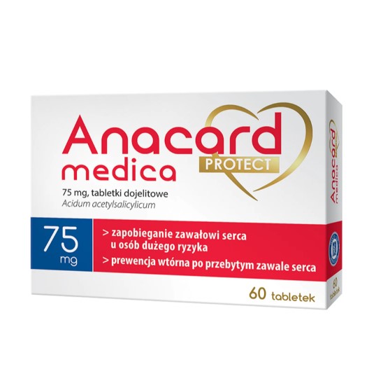 Anacard Medica Protect to lek doustny w postaci tabletek dojelitowych wydawany bez recepty (bez przepisu lekarza). Zawiera substancję czynną – kwas acetylosalicylowy, który hamuje agregację (zlepianie) płytek krwi. Jest przeznaczony do długotrwałego stosowania w chorobach z ryzykiem zakrzepów i zatorów naczyń krwionośnych.