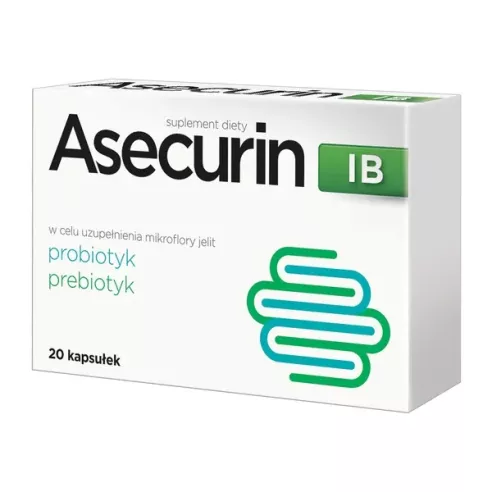 Asecurin IB to suplement diety w postaci kapsułek. Każda kapsułka zawiera specjalnie wybrane szczepy bakterii z rodzaju Lactobacillus i Bifidobacerium oraz drożdże Saccharomyces boulardii. Formuła została uzupełniona dodatkowo o inulinę. Zalecana dzienna porcja preparatu pozwala na dostarczenie do organizmu 10 miliardów komórek bakterii oraz 5 miliardów komórek drożdży o wciąż odkrywanym potencjale prozdrowotnym.