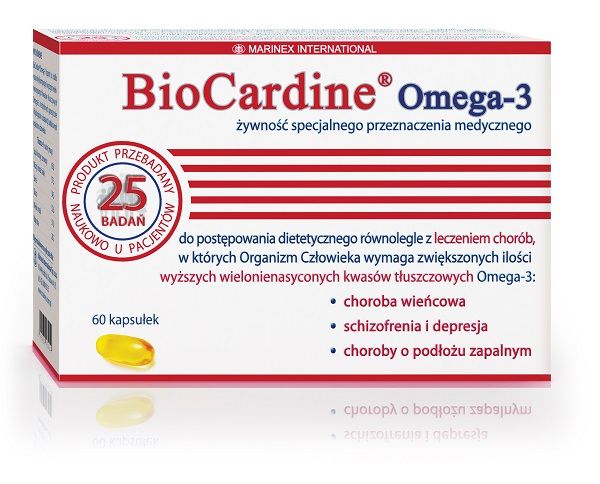 BioCardine® Omega-3 to żywność specjalnego przeznaczenia medycznego zawierająca w składzie chronione europejskim patentem połączenie pełnowartościowych, naturalnie czystych i niewzbogaconych olejów z mięśni sardynek, sardeli i makreli poławianych w południowych rejonach Oceanu Spokojnego. Preparat przeznaczony jest do postępowania dietetycznego w niedożywieniu organizmu człowieka wyższymi kwasami tłuszczowymi do stosowania równolegle z leczeniem schizofrenii i depresji, choroby wieńcowej oraz chorób o podłożu zapalnym.
