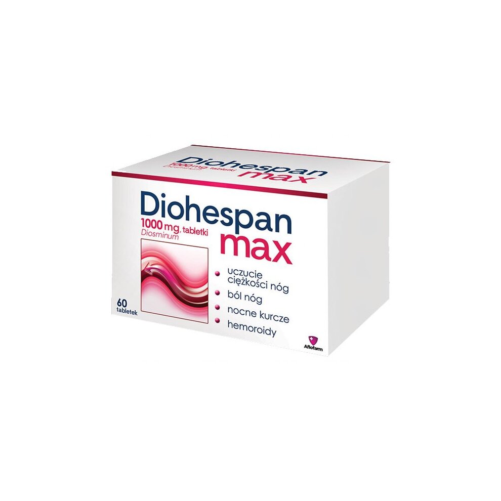 Diohespan Max jest produktem leczniczym w postaci tabletek, który zwiększa napięcie naczyń żylnych oraz działa ochronnie na naczynia. Dedykowany jest do stosowania przy żylakach, uczuciu ciężkich nóg czy nocnych kurczach oraz podczas nasilonych objawach hemoroidów.