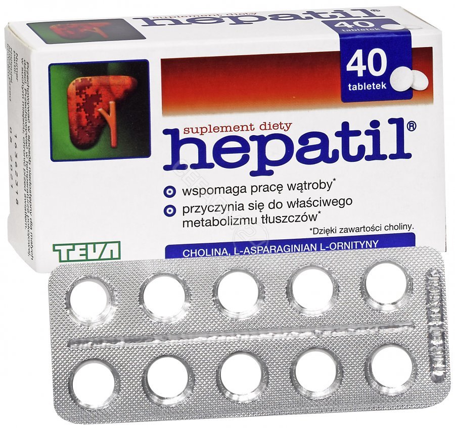Hepatil to suplement diety w postaci tabletek łączący w składzie cholinę oraz L-asparaginian L-ornityny. Formuła może być stosowana u osób dorosłych oraz dzieci poowyżej 7 roku życia.