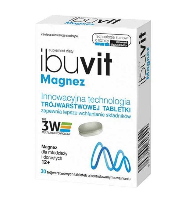 Ibuvit Magnez to suplement diety o wysokiej zawartości magnezu w postaci tlenku i wodorotlenku. Składnik aktywny został zamknięty w innowacyjnej postaci trójwarstwowej tabletki o kontrolowanym uwalnianiu. Pozwala ona na lepsze wchłanianie składnika aktywnego w organizmie w trzech fazach (w różnych odstępach czasowych). Zewnętrzna warstwa szybkiego uwalniania (Fast) zawiera tlenek magnezu, który rozpuszcza się w kwaśnym środowisku, a w konsekwencji jest uwalniany w żołądku. Warstwa pośredniego uwalniania (Normal) jest warstwą obojętną zastosowaną w celu eliminacji interakcji pomiędzy różnymi substancjami będącymi źródłem magnezu. Warstwa opóźnionego uwalniania (Retard) pozwala na wchłanianie składnika aktywnego w jelitach. Zawiera ona magnez w postaci wodorotlenku, który został zamknięty w kwaśniej macierzy hydrożelowej.