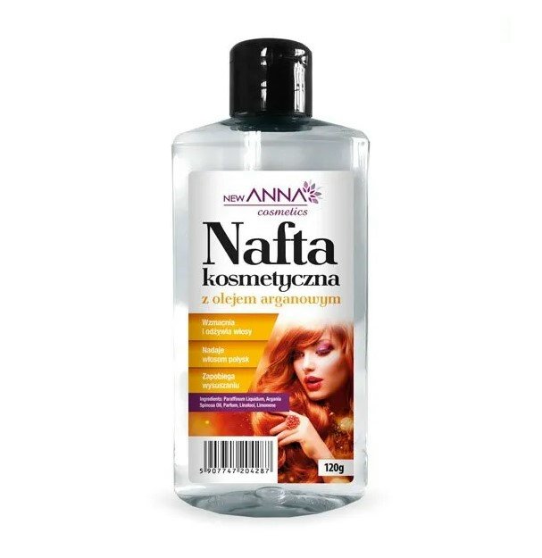 Olej arganowy – „płynne złoto” jest wyjątkowo bogaty w substancje odżywcze. Zawierający witaminy E i F dogłębnie wzmacnia i odżywia włosy. Regularnie stosowany sprawia, że włosy stają się mocniejsze, grubsze i zyskują atrakcyjny połysk. Zapobiega rozdwajaniu końcówek. Nafta kosmetyczna regularnie stosowana dodaje włosom elastyczności, zapobiega ich elektryzowaniu, ułatwia rozczesywanie i modelowanie.