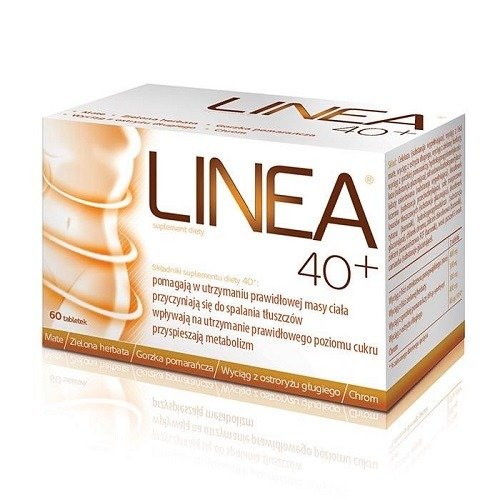 Linea 40+ to suplement diety w postaci tabletek dedykowany uzupełnieniu codziennej diety kobiet powyżej 40 roku życia w cenne składniki aktywne. Formuła łączy 4 wyciągi roślinne, w tym pozyskane z liści ostrokrzewu paragwajskiego i zielonej herbaty, owocu gorzkiej pomarańczy oraz ostryżu długiego. Dodatkowo skład został uzupełniony o wysoką zawartość chromu w nieorganicznej formie chlorku.