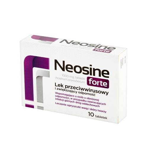 Lek Neosine forte zawiera substancję czynną – inozyny pranobeks, która hamuje namnażanie chorobotwórczych dla człowieka wirusów z grupy Herpes.