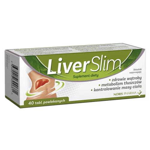 Liverslim, tabletki to suplement diety zawierający szereg składników dbających o zdrowie wątroby i wspierających proces odchudzania. Zawiera wyciąg z karczocha, który wspomaga proces wydzielania soków trawiennych. Wyciąg z ostryżu chroni przed gromadzeniem tkanki tłuszczowej. Zawiera również wyciąg z zielonej herbaty, cholinę i wyciąg z cykorii.