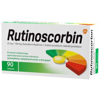 Rutinoscorbin to lek w postaci tabletek łączący w sobie rutozyd i witaminę C w formie kwasu askorbowego. Wskazaniem do stosowania preparatu są stany niedoboru oraz zwiększonego zapotrzebowania na witaminę C, w tym przeziębienie oraz zakażenia wirusowe takie jak grypa. Dodatkowo lek może być także stosowany pomocniczo w nadmiernej przepuszczalności naczyń krwionośnych. Substancje czynne charakteryzują się połączonym działaniem. Rutozyd wzmacnia naczynia krwionośne i zmniejsza ich przepuszczalność. Chroni również witaminę C przed utlenieniem, co pozwala jej dłużej zachować swoje właściwości. Witamina C jest niezbędna w wielu procesach metabolicznych, uczestniczy m.in. w tworzeniu kolagenu i hemoglobiny oraz ułatwia przyswajanie żelaza. Dodatkowo posiada również działanie przeciwutleniające.