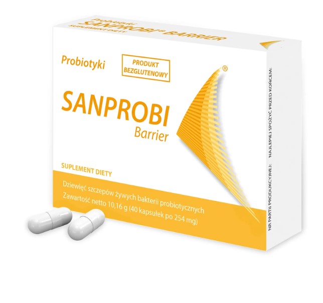 Sanprobi Barrier to suplement diety w formie kapsułek zawierający unikalną kompozycję dziewięciu szczepów bakterii kwasu mlekowego. Każda kapsułka zawiera nie mniej niż 2,5 miliarda bakterii z rodzaju Lactobacillus, Bifidobacterium i Lactococcus.