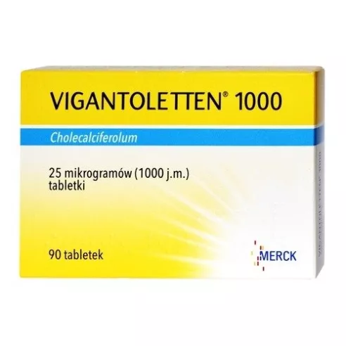 Vigantoletten 1000 to lek w postaci tabletek, którego substancją czynną jest ważna w procesie tworzenia kości witamina D (cholekalcyferol). Każda tabletka produktu leczniczego zawiera 25 μg witaminy D, co odpowiada 1000 j.m. Tabletki z witaminą D Vigantoletten® 1000 stosowane są w celu zapobiegania niedoborom tej ważnej witaminy.